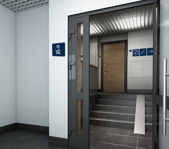 Контрастное изображение хорошо считывается даже в слабоосвещенных подъездах